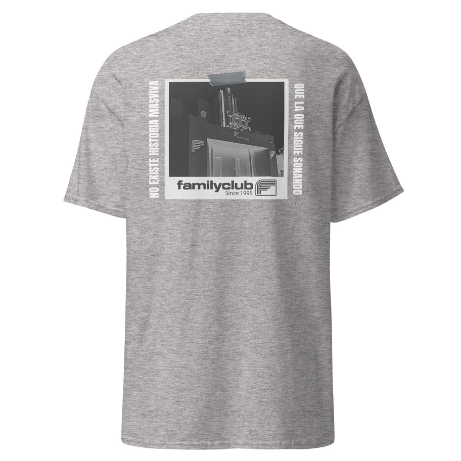 No dejes pasar la oportunidad de hacerte con esta camiseta y rendir homenaje a Family Club, un templo del techno que dejó huella en la escena electrónica.